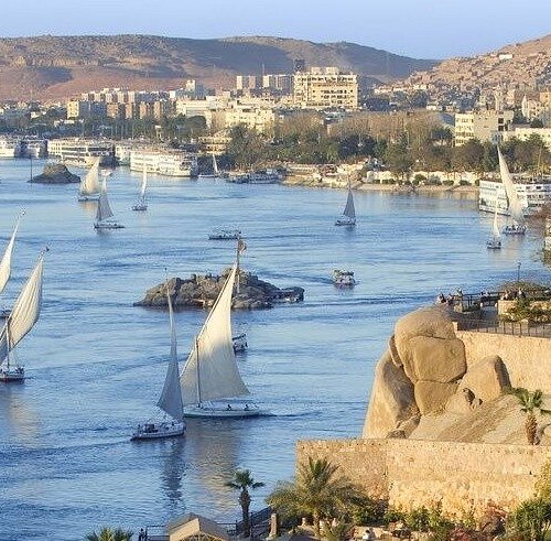 Aswan: A city on the Nile River, located about 899 km south from Cairo It contains significant archaeological sites like the Philae temple, on Agilkia Island near the Aswan Dam. Philae’s ruins include the columned Temple of Isis, dating to the 4th century B.C. Downriver, Elephantine Island holds the Temple of Khnum, from the Third Dynasty.