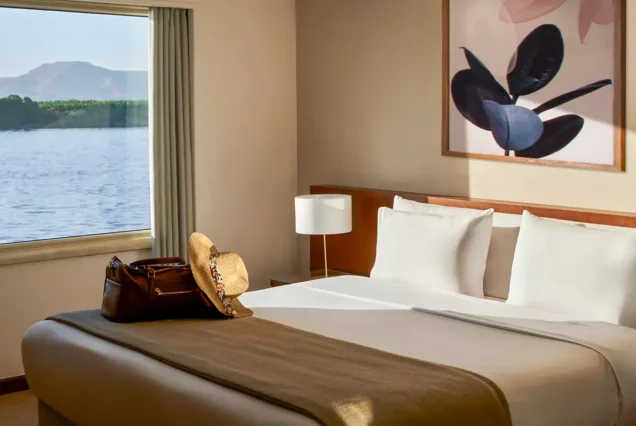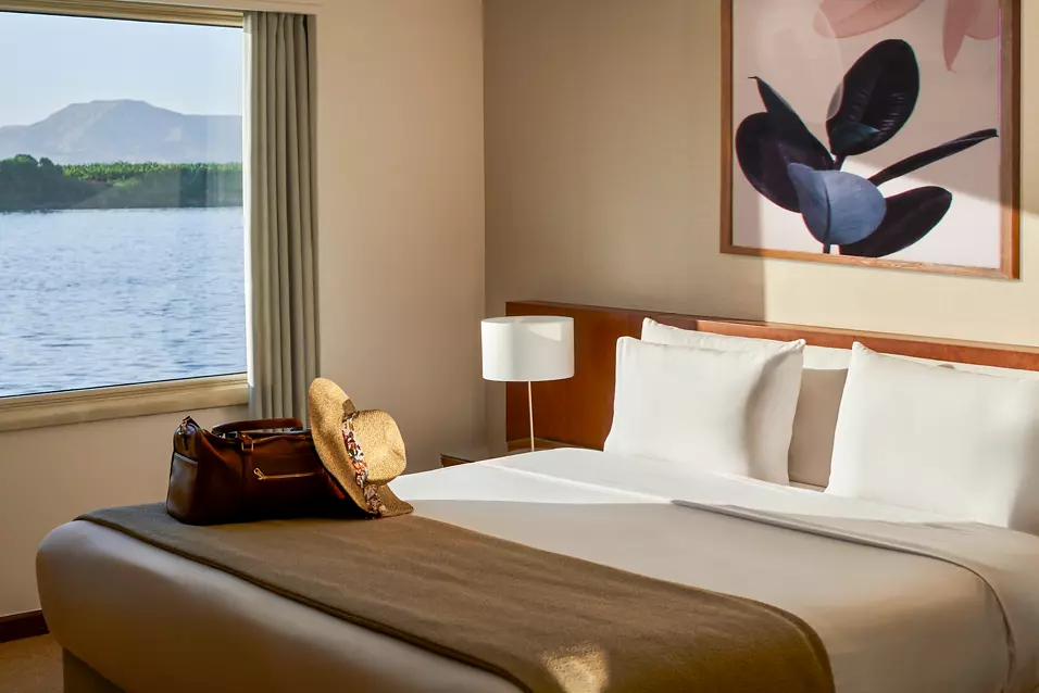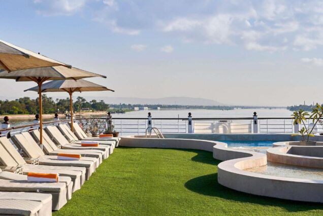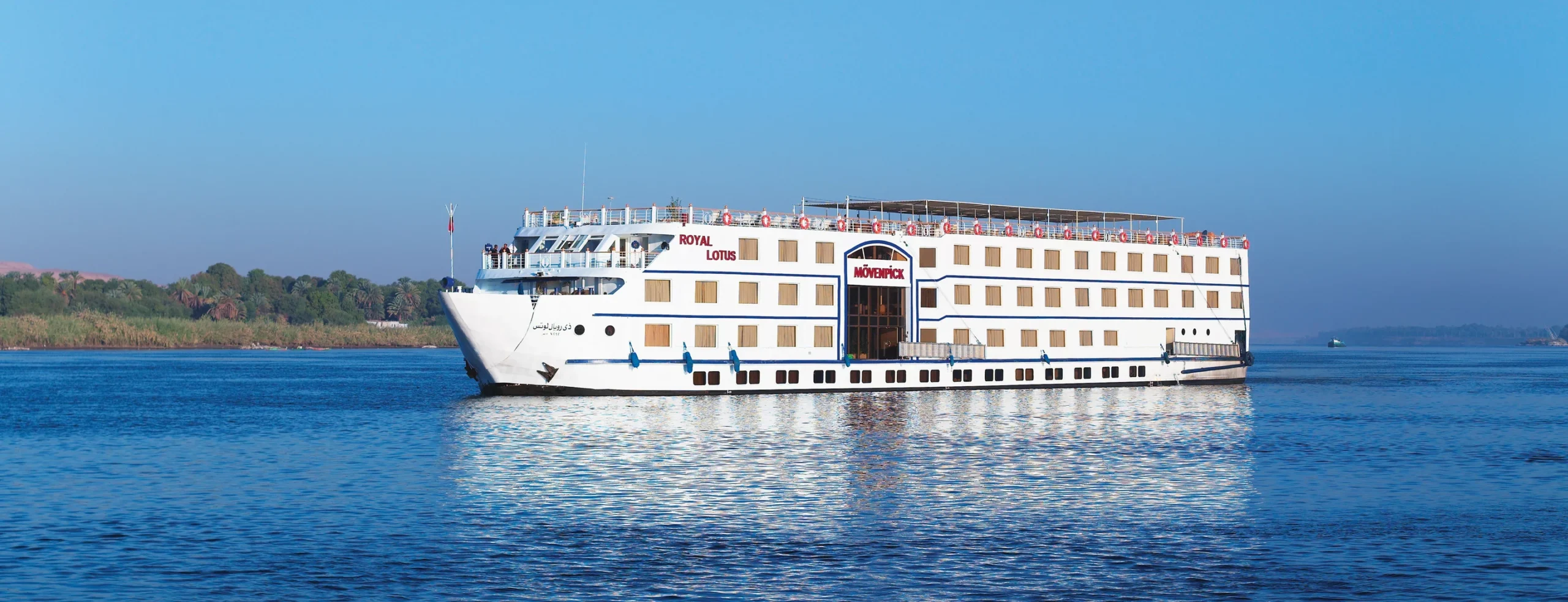 Movenpick MS Royal Lotus is a 5-star deluxe Nile cruise. It will give you the chance to discover the ruins of Ancient Egypt with style and comfort. This river cruiser is appointed with elegant suites, a large sundeck with a large swimming pool, a gym, and more. It contains 60 cabins of approximately 22 sqm and 2 magnificent Royal Suites.